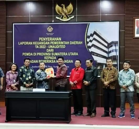 Acara diawali dengan penyerahan dokumen LKPD kepada Kepala BPK RI Perwakilan Sumatera Utara.