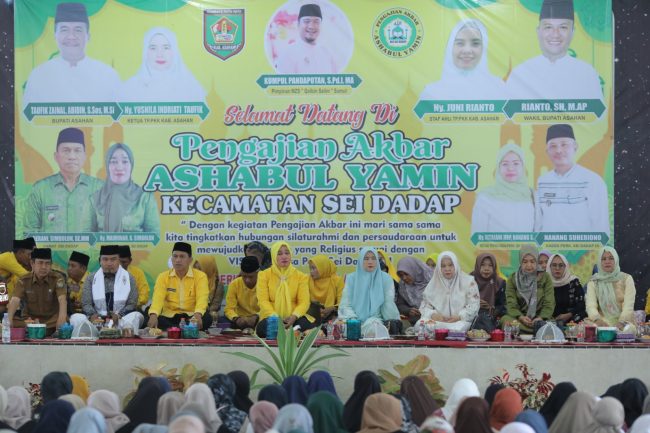Pengajian yang mengusung tema ” Dengan kegiatan pengajian Akbar ini mari sama sama kita tingkat hubungan silaturahmi dan persaudaraan untuk mewujudkan Asahan yang Religius sesuai dengan visi misi Pemerintah Kabupaten Asahan” juga turut dihadiri, Kabag Kesra Kabupaten Asahan, Camat Sei Dadap, Manager Perkebunan Sei Dadap I/II, Ketua Darma Wanita Kabupaten Asahan, Para Kepala Desa Se-Kecamatan Sei Dadap, serta para jamaah dan tamu undangan lainnya.