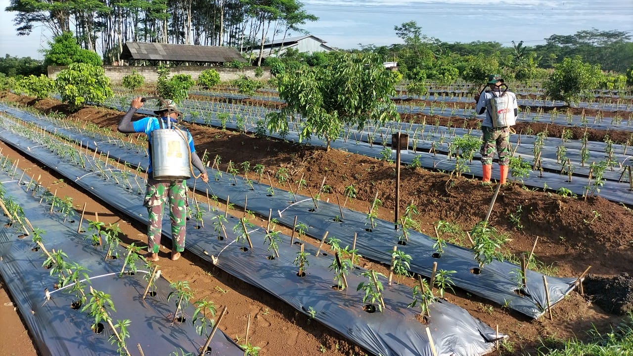 VIRAL24.CO.ID – BATANG – Anggota Kodim 0736/Batang yang tergabung dalam time ketahanan pangan tanaman cabe merah telah melakukan gerakan antisipasi pengendalian hama serangga semut di lahan demplot tanaman cabe merah yang berlokasi di Desa Rowobelang Kecamatan Batang. Kamis (16/2/2023).