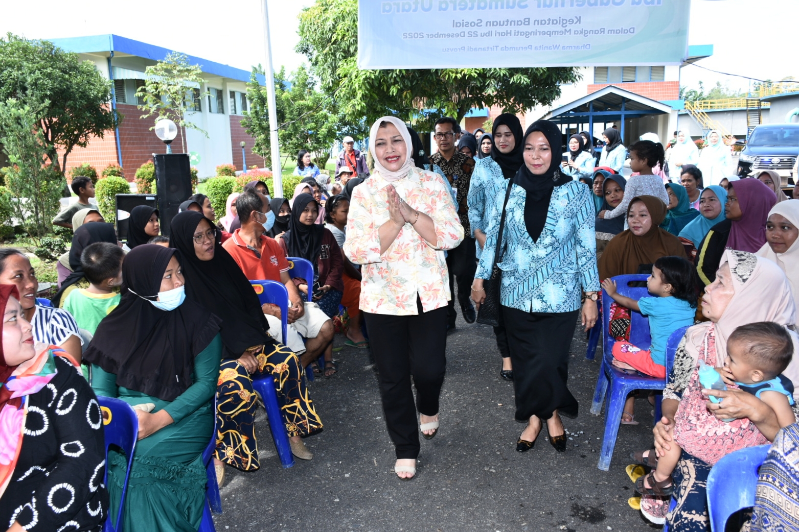 VIRAL24.CO.ID – DELITUA – Ketua Tim Penggerak Pemberdayaan Keluarga (TP PKK) Sumatera Utara (Sumut) Nawal Lubis menyerahkan bantuan paket sembako kepada masyarakat di sekitaran Instalasi Pengolahan Air (IPA) Delitua. Bantuan sosial dalam rangka memperingati Hari Ibu ke-64 itu diserahkan secara simbolis di Kantor IPA Delitua, Jalan Besar Delitua, Jumat (23/12)