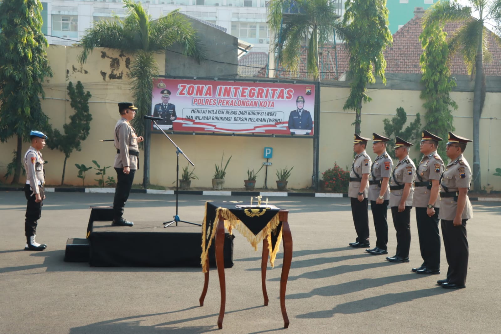 Upacara serah terima Jabatan yang dipimpin langsung Kapolres Pekalongan Kota, Polda Jateng AKBP. A. Recky R., S.I.K., M.H., M.Si., dan Perwira Upacara adalah Kabag SDM Kompol Trismiyanto, S.H.,M.H, sedangkan komandan Upacara adalah Kasat Pol Airud AKP Nyoman Hermanto.S.M dan dihadiri Wakapolres Pekalongan Kota, Kompol Hj. Pariastutik, S.H., Pejabat Utama (PJU) Polres, Perwira staf Polres Pekalongan Kota dan Perwakilan Anggota Polres Pekalongan Kota serta Bhayangkari Cabang Pekalongan Kota.