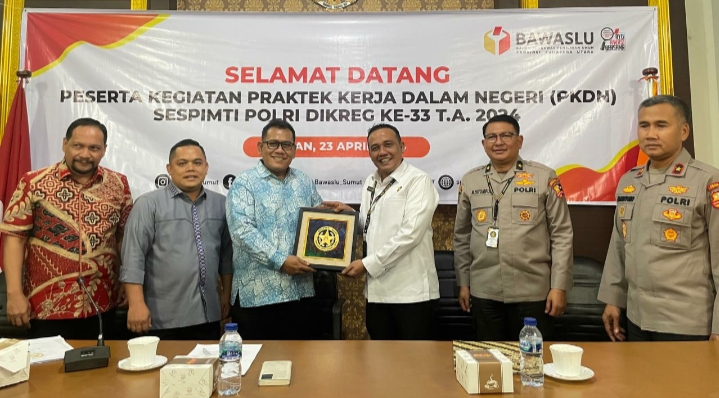 VIRAL24.CO.ID – MEDAN – Pimpinan Bawaslu Provinsi Sumatera Utara menerima kunjungan peserta Praktek Kerja Dalam Negeri (PKDN) Sekolah Staf dan Pimpinan Tinggi (Sespimti) Polri tahun 2024 di Ruang Rapat, Kantor Bawaslu Prov. Sumut, Jalan Haji Adam Malik, Medan, Selasa (23/4/2024).