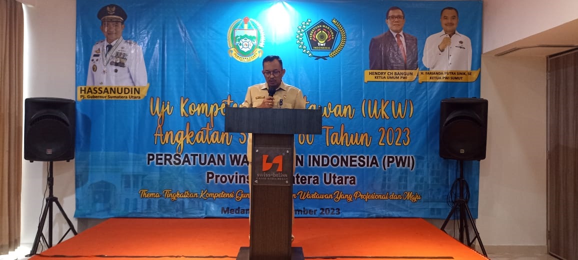 VIRAL24.CO.ID – MEDAN – Penjabat (Pj) Gubernur Sumatera Utara (Sumut) Hassanudin mengapresiasi dan berharap pelaksanaan Uji Kompetensi Wartawan (UKW) yang diselenggarakan Persatuan Wartawan Indonesia (PWI) Sumut mampu terus melahirkan wartawan yang kompeten. Sehingga dapat berperan memberikan pencerahan kepada masyarakat.