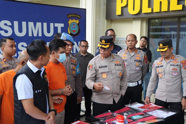 “Kedua pelaku membuat SIM palsu ini dari sebuah warung internet (Warnet) di Jalan IAIN Kelurahan Gaharu Kecamatan Medan Timur,” ucap Kapolrestabes Medan Kombes Pol Gidion Arif Setyawan didampingi Wakapolres AKBP Rudi Silaen, Kasat Reskrim AKBP Bayu Putra Wijayanto, Kasat Lantas AKBP I Made Parwita di loby Mapolrestabes Medan, Kamis (5/6/2026) sore.