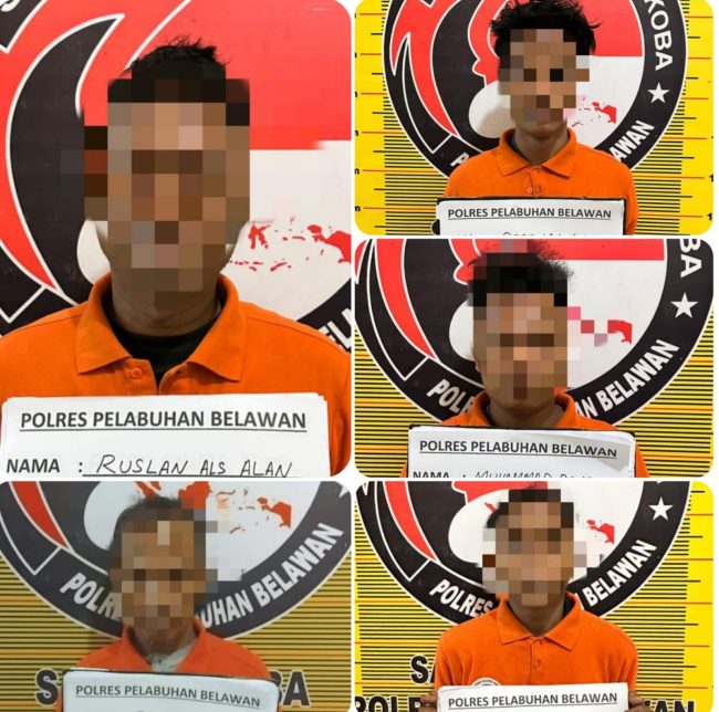 VIRAL24.CO.ID – BELAWAN – Polres Pelabuhan Belawan komitmen dalam memberantas peredaran narkotika di wilayah hukumnya, satuan reserse narkoba Polres Pelabuhan Belawan melaksanakan operasi Grebek Sarang Narkoba (GKN) di Jalan Rawe, Kelurahan Tangkahan dan berhasil menangkap lima orang pelaku, empat di antaranya sebagai pengedar dan satu orang sebagai pengguna narkoba jenis shabu, Selasa 20 Mei 2025.
