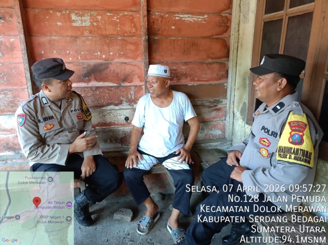 VIRAL24.CO.ID – TEBING TINGGI – Bhabinkamtibmas Polsek Dolok Merawan melaksanakan kegiatan sambang dan silaturahmi dengan tokoh agama serta warga di Desa Dolok Merawan, Kecamatan Dolok Merawan, Kabupaten Serdang Bedagai, Selasa (7/4/2026).