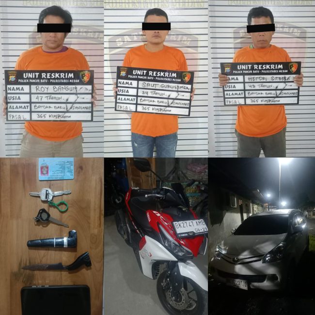 “ 3 Pelaku sudah kami amankan dan 1 Pelaku masih kami lakukan pengejaran (DPO), kepada para Pelaku dijerat dengan Pasal 365 KUHPidana, tentang pencurian dengan kekerasan, hasil interogasi sementara, uang hasil kejahatan mereka bagi – bagi dengan berpariasi,” Tegas Kapolsek Pancur Batu.
