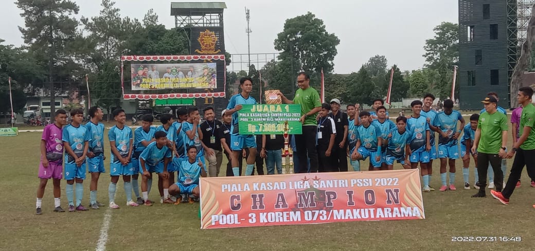 VIRAL24.CO.ID – KENDAL – Tim sepak bola Ponpes Darul Amanah perwakilan dari Kodim 0715/Kendal berhasil menjuarai Liga santri tingkat Korem 073/Makutarama setelah berhasil mengalahkan ponpes Al Ma’ruf perwakilan Kodim 0722/Kudus dalam pertandingan yang di gelar di lapangan kurusetra yonif 411/Pandawa, minggu (31/07/22).