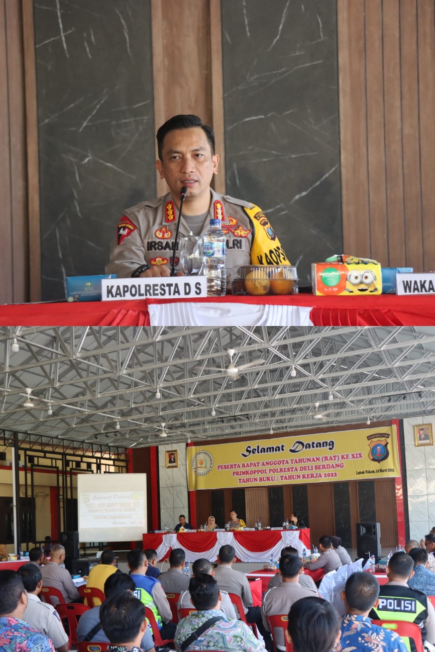 Sementara Kapolresta Deliserdang, Kombes Pol Irsan Sinuhaji, SIK, MH dalam sambutannya mengatakan, Rapat Anggota Tahunan menjadi forum wajib setiap badan usaha koperasi, sehatnya sebuah koperasi diukur dengan adanya RAT, karena terdapat pembahasan mengenai pertanggungjawaban kinerja pengurus.