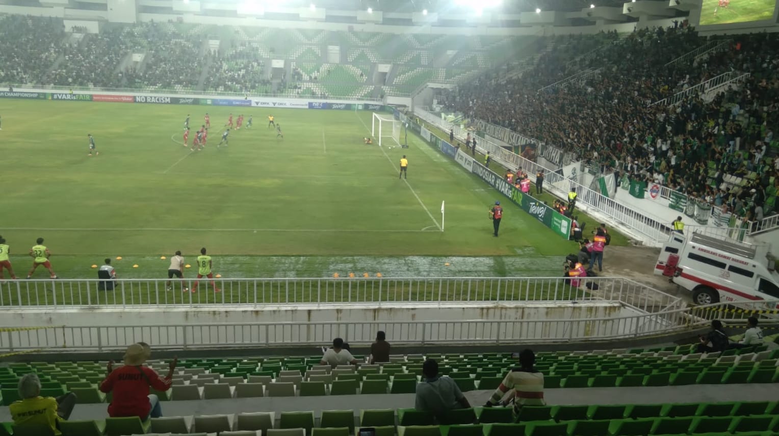 Gol pembuka tercipta pada menit ke-30 melalui Fellipe Cadenazi yang memanfaatkan umpan dari sisi sayap. Keunggulan tuan rumah tidak bertahan lama setelah Bekasi City menyamakan kedudukan lewat Saldi tujuh menit berselang. Skor imbang 1-1 bertahan hingga jeda.