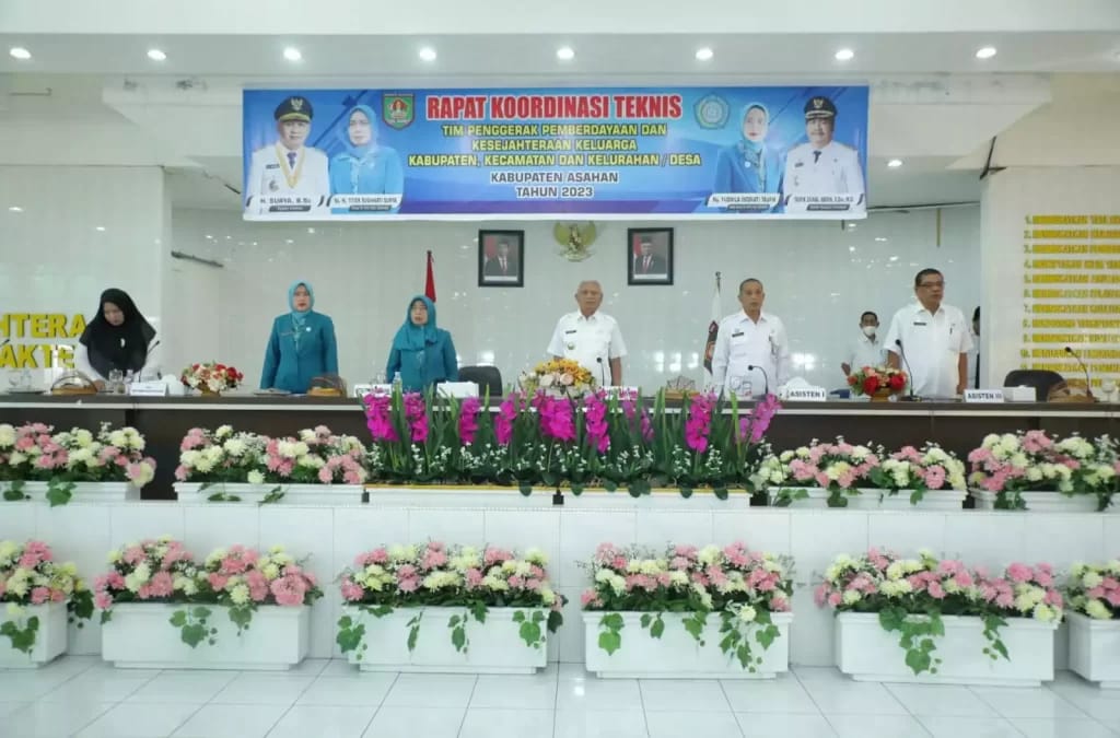 VIRAL24.CO.ID – ASAHAN – Mengawali tahun 2023, TP PKK Kabupaten Asahan menggelar Rapat Koordinasi Teknis (Rakornis) TP PKK Kabupaten Asahan yang dibuka secara langsung oleh Bupati Asahan H. Surya, BSc, di Aula Melati Kantor Bupati Asahan, Rabu (25/01/2023). Turut hadir Para Asisten, OPD, Camat, Pengurus TP PKK Kabupaten Asahan, Ketua TP PKK Kecamatan dan Ketua TP PKK Desa/Kelurahan, mengikuti rangkaian kegiatan Rakiornis tersebut.
