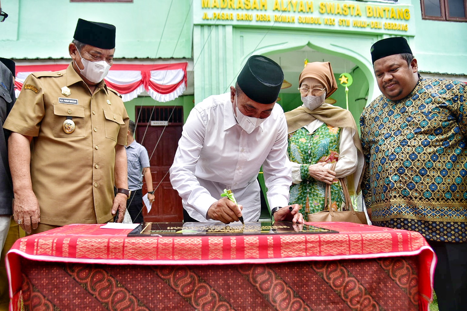 VIRAL24.CO.ID – DELISERDANG – Gubernur Sumatera Utara (Sumut) Edy Rahmayadi meresmikan Gedung Madrasah Aliyah Swasta Bintang Rabbani di STM Hulu, Kabupaten Deliserdang, Senin (25/7). Edy Rahmayadi pun menegaskan akan terus membantu keperluan madrasah satu-satunya di Kecamatan STM Hulu tersebut.
