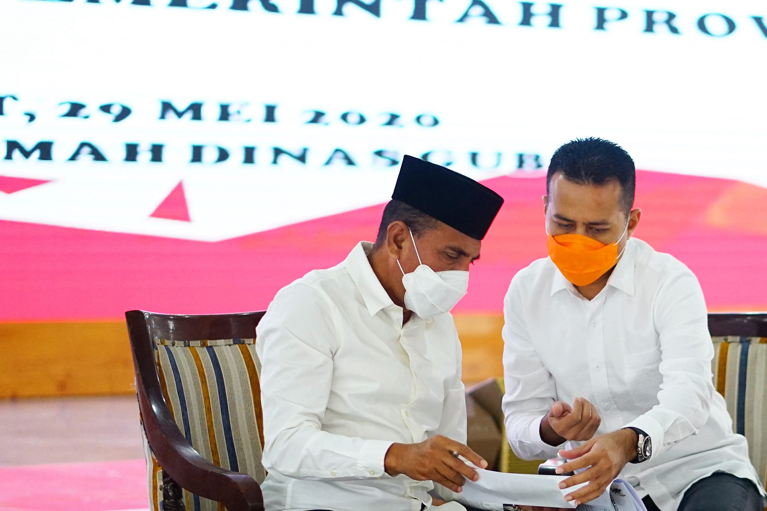 Gubernur Sumut Edy Rahmayadi bersama Wakil Gubernur (Wagub) Sumatera Utara (Sumut) Musa Rajekshah usai Rapat Koorinasi tentang Percepatan Penanganan Covid-19 di Provinsi Sumatera Utara
