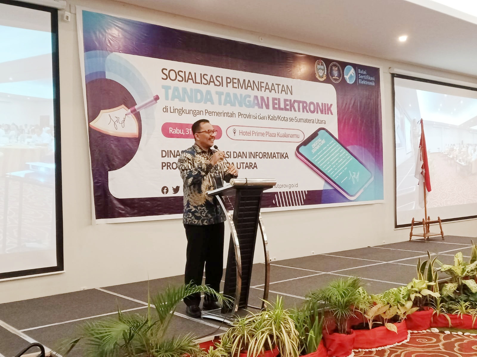 “Penggunaan tanda tangan elektronik membuat kinerja organisasi lebih ringan dan cepat, pejabat tidak perlu repot lagi harus menandatangani dokumen secara manual dalam jumlah besar,” kata Ilyas S Sitorus saat membuka Kegiatan Sosialisasi Pemanfaatan Tanda Tangan Elektronik di Hotel Prime Plaza Kualanamu, Jalan Sultan Serdang Nomor 88, Deliserdang, Rabu (31/5).