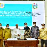 VIRAL24.CO.ID – MEDAN – Pemerintah Kabupaten Labuhanbatu Selatan (Labusel) menyerahkan sertifikat tanah