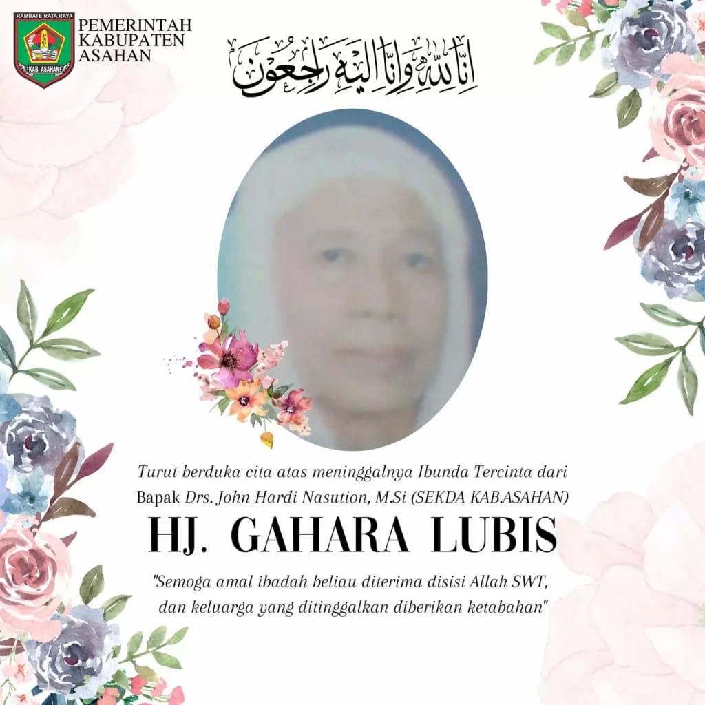 VIRAL24.CO.ID – ASAHAN – Innalilahi wa Inna ilaihi Raji’un. Turut berduka cita atas meninggalnya ibunda tercinta dari Bapak Drs. John Hardi Nasution, M.Si (Sekda Kabupaten Asahan) Hj. GAHARA LUBIS.