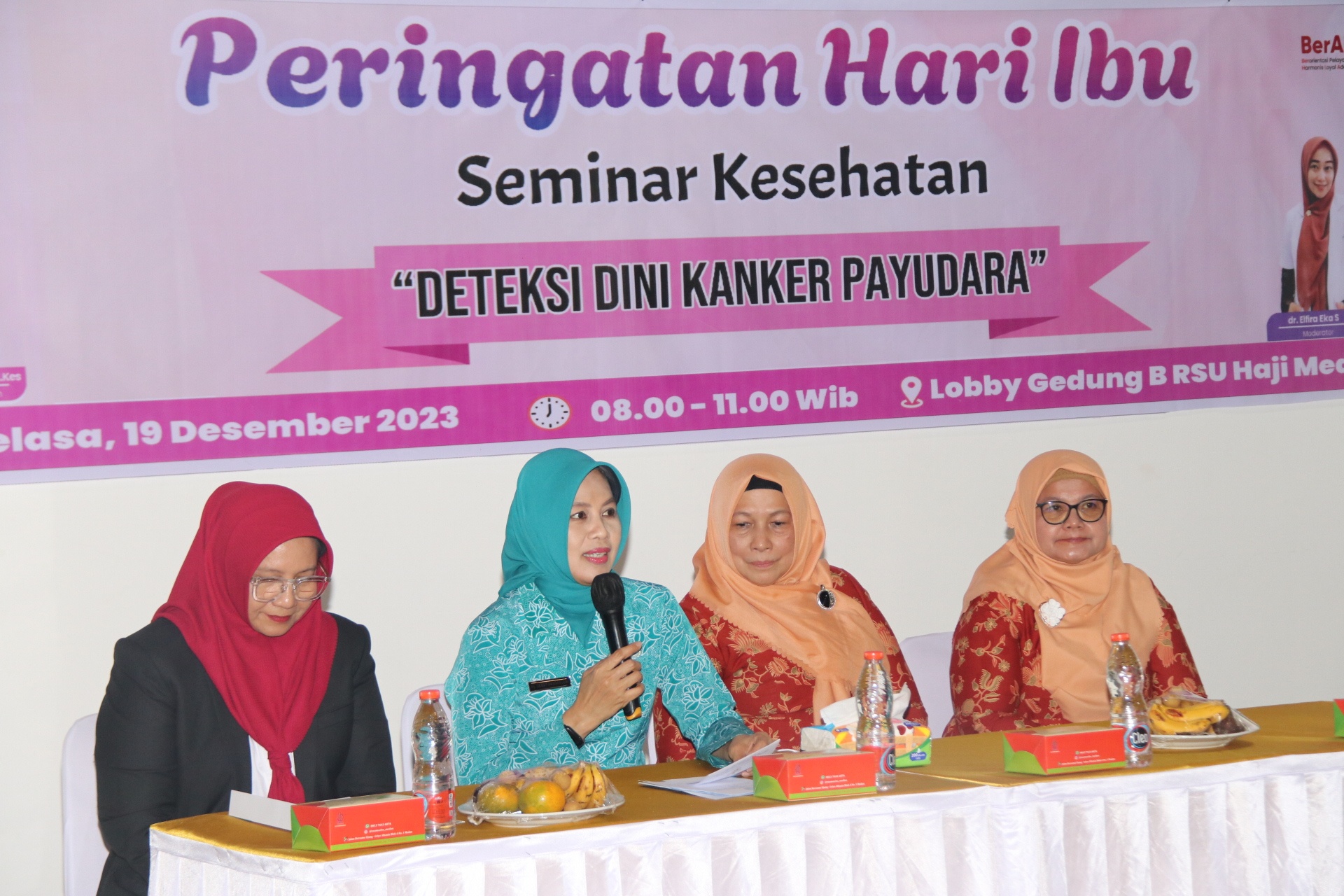 “Saya sangat mengapresiasi seminar yang dilaksanakan pada hari ini. Kegiatan-kegiatan seperti ini merupakan salah satu upaya untuk menyelamatkan para perempuan Indonesia, khususnya para ibu dari risiko kanker payudara,” ujarnya.