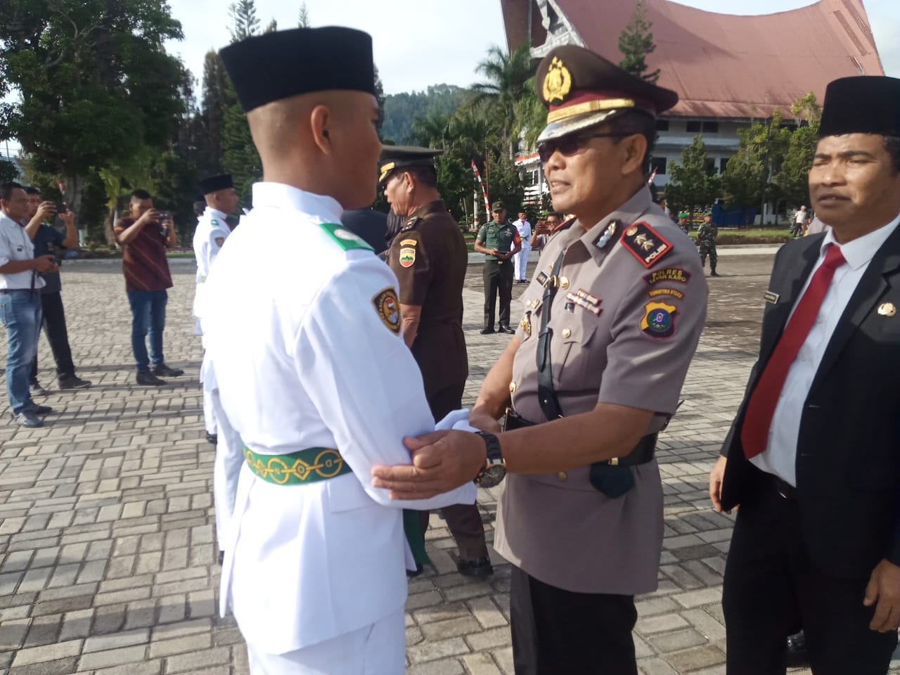 Bupati Toba juga tak lupa mengucapkan terima kasih kepada para pelatih yang telah memberikan sumbangsih dalam melatih fisik dan mental para paskibraka sehingga mereka siap melaksanakan tugas mulia, mengibarkan sang merah putih.