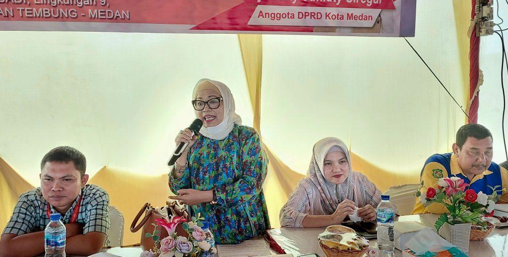 Anggota DPRD Medan Hj Netty Yuniaty Siregar (Partai Gerindra) di Jl Bersama Gg Pribadi, lingkungan 9, Kelurahan Bantan, Kecamatan Medan Tembung, Sabtu pagi (11/2/2023)