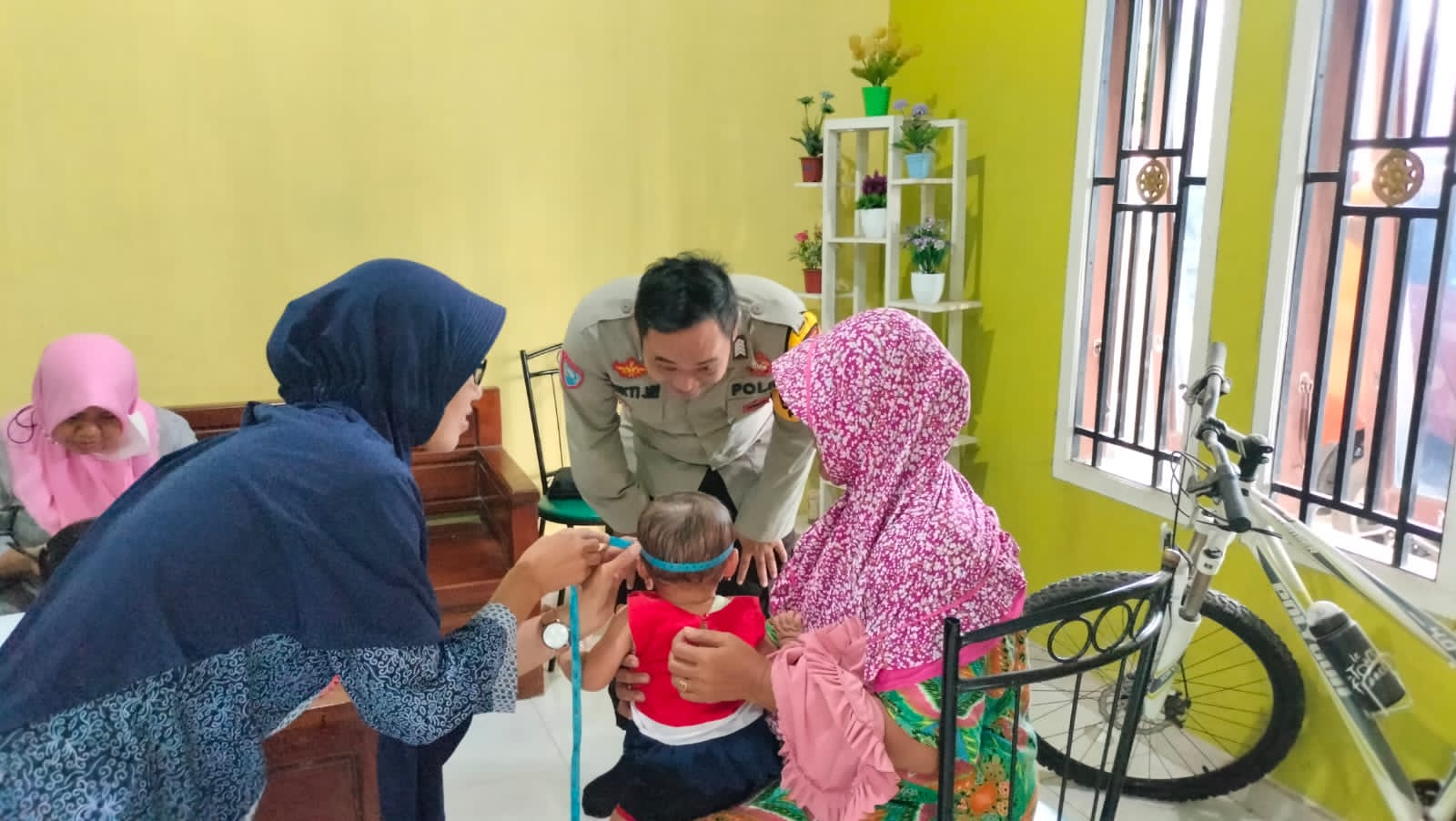 Bhabinkamtibmas Polsek Gemuh Bripka Mukti Wijayanto melakukan pemantauan sekaligus pengamanan pada kegiatan Posyandu Balita dan pembagian makanan bergizi untuk balita tersebut sehingga kegiatan dapat terlaksana dengan aman, tertib, dan lancar.